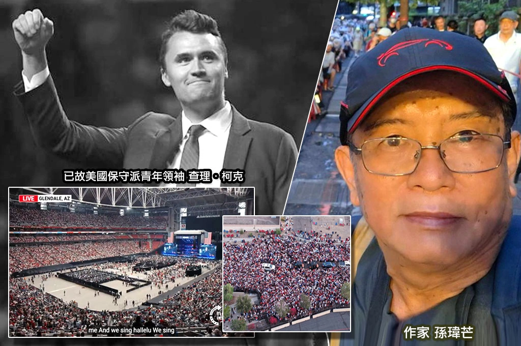 美國保守派政壇網紅、青年組織「美國轉捩點」(Turning Point USA)創辦人查理‧柯克(Charlie Kirk)日前遇刺身亡,昨(21日)於鳳凰城舉行追思儀式。作家孫瑋芒評價,美國轉折點主辦追悼會,展現了強大的組織力、協調力,人才濟濟,且根據《紐約郵報》預估,有10萬人參與這場追思會,「那麼多美國民眾愛查理‧柯克!」