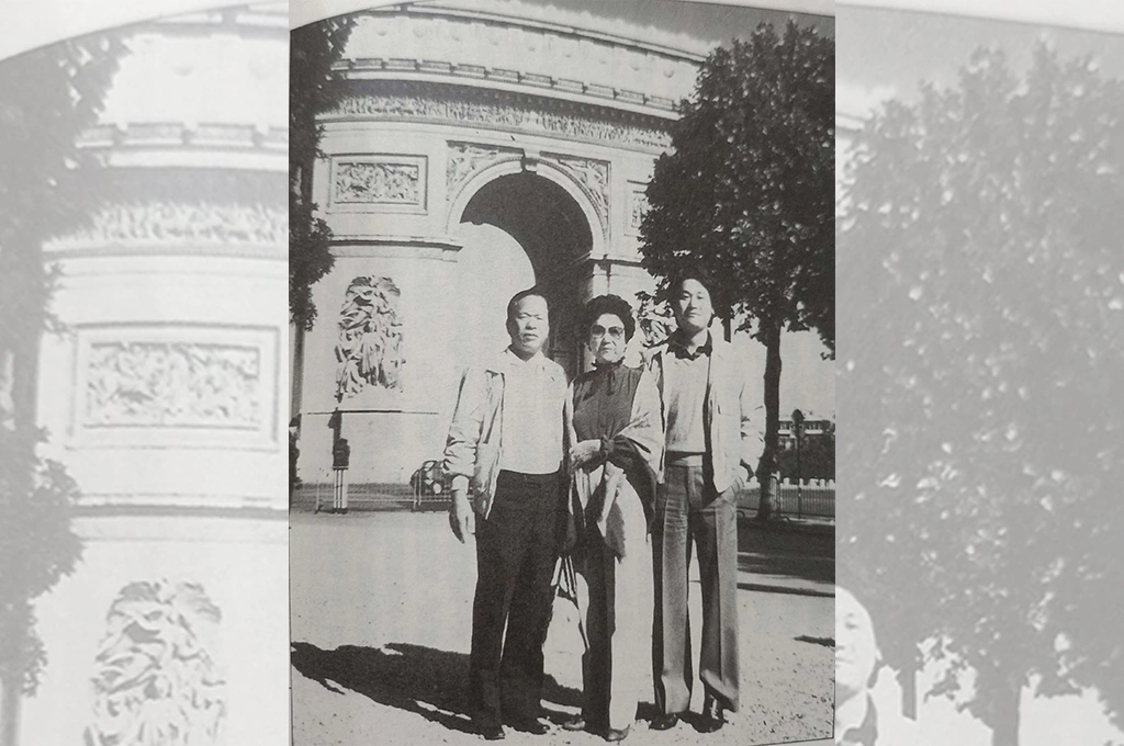 1982年6月,吳火獅(左)、吳桂蘭(中)、吳東亮(右)到法國巴黎凱旋門旅遊。