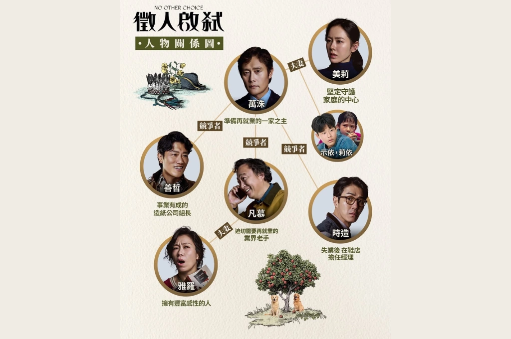 起初,他發誓三個月內一定要再就業,但現實殘酷,面試一再失敗,只能靠「打零工」維生。當「守住家庭」成為唯一信念時,他決定:「如果沒有職缺,那就創造一個給自己」。某天參加面試前,妻子美莉(孫藝珍 飾)環抱著萬洙,笑著在他的耳邊提醒:「你要幹掉所有人」,萬洙眼神閃爍、笑容逐漸僵硬,那一刻的他彷彿下定了某種決心。