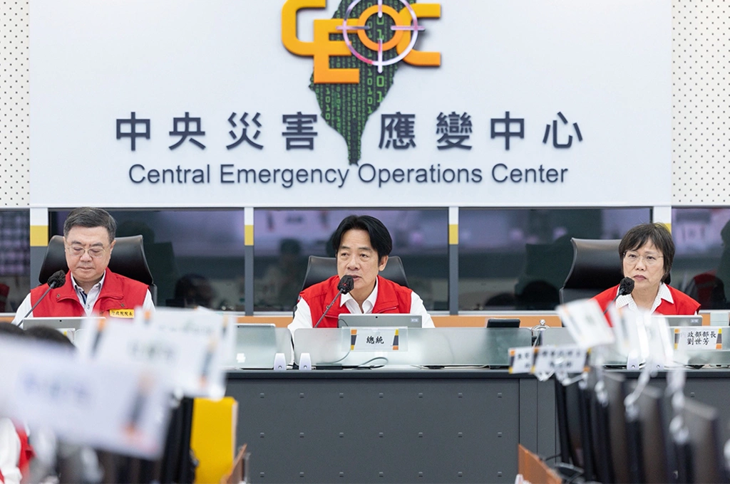 吳崢會後轉述賴清德致詞,賴清德說,過去幾天,強颱樺加沙來襲,非常感謝中央、地方的防救災人員、國軍,以及水電網路等關鍵基礎設施的維運人員,全天候待命和支援。