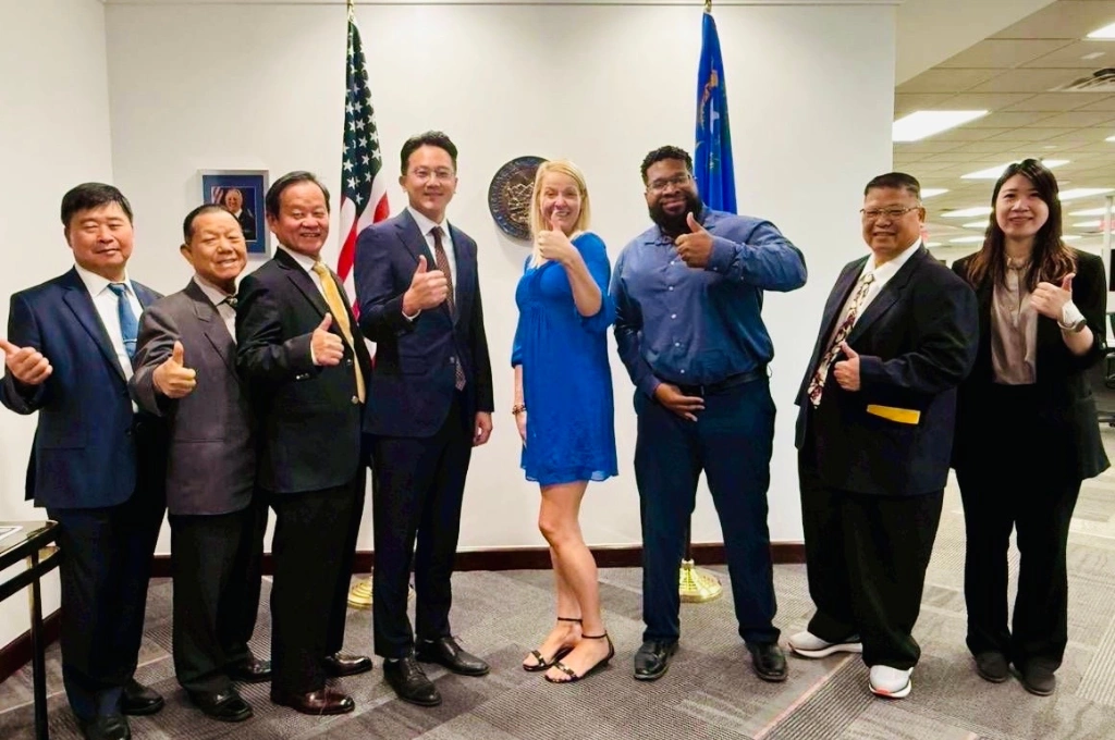 經發局表示,本次訪美亦偕同螺絲公會拜訪內華達州州長經濟發展辦公室(GOED)與拉斯維加斯商會 (Vegas Chamber),探討雙邊產業聚落交流與經濟發展合作,獲GOED 商務發展資深總監Melanie Shelton及Vegas Chamber國際商務發展執行官 Joe Green熱烈接待。除了深入了解內華達州的經濟發展、投資誘因、產業合作及市場拓展,並同時向內華達州行銷高雄扣件產業的堅實製造實力、高科技產業轉型AI領域的發展以及演場會、會展經濟帶動城市品牌、娛樂產業與觀光資源的成長。