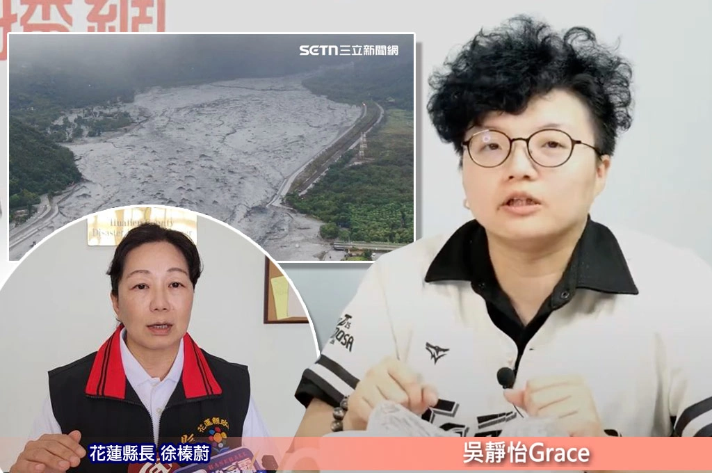 花蓮馬太鞍溪堰塞湖溢堤,造成14人罹難、目前仍有31人失聯。而中央政府早在事發前期,至少9度通報花蓮縣政府,要求盡速執行疏散,卻仍有民眾不知道要撤離。對此,政治評論員吳靜怡今(25日)於電台節目《新聞放鞭炮》痛批,颱風到來,花蓮縣長徐榛蔚卻出國,且毫無疏散計畫,「還跟中央報告撤離完畢,結果仍有100多人在現場」。