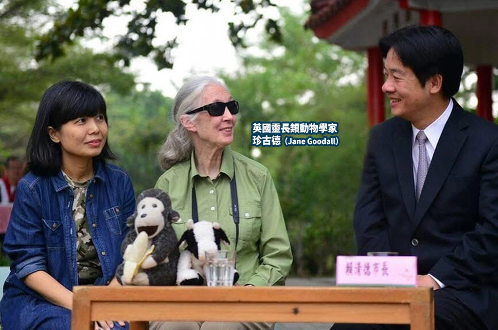 賴清德表示,珍古德博士在坦尚尼亞叢林,透過望遠鏡觀察黑猩猩;也站上演講台,拿起麥克風推動環境倡議;她善良、溫暖的身影,引領無數年輕人,前仆後繼,以行動改變了世界。