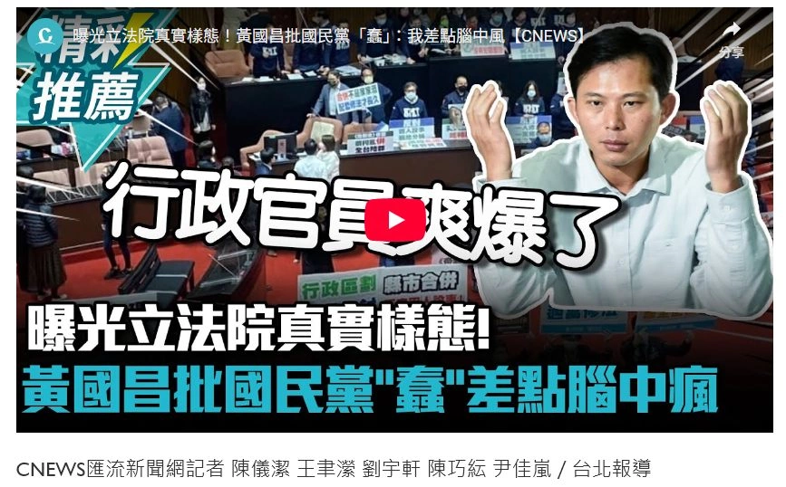 <CNEWS曝光立法院真實樣態!黃國昌批國民黨「 蠢 」:我差點腦中瘋>匯流新聞網,2023年3月2日。