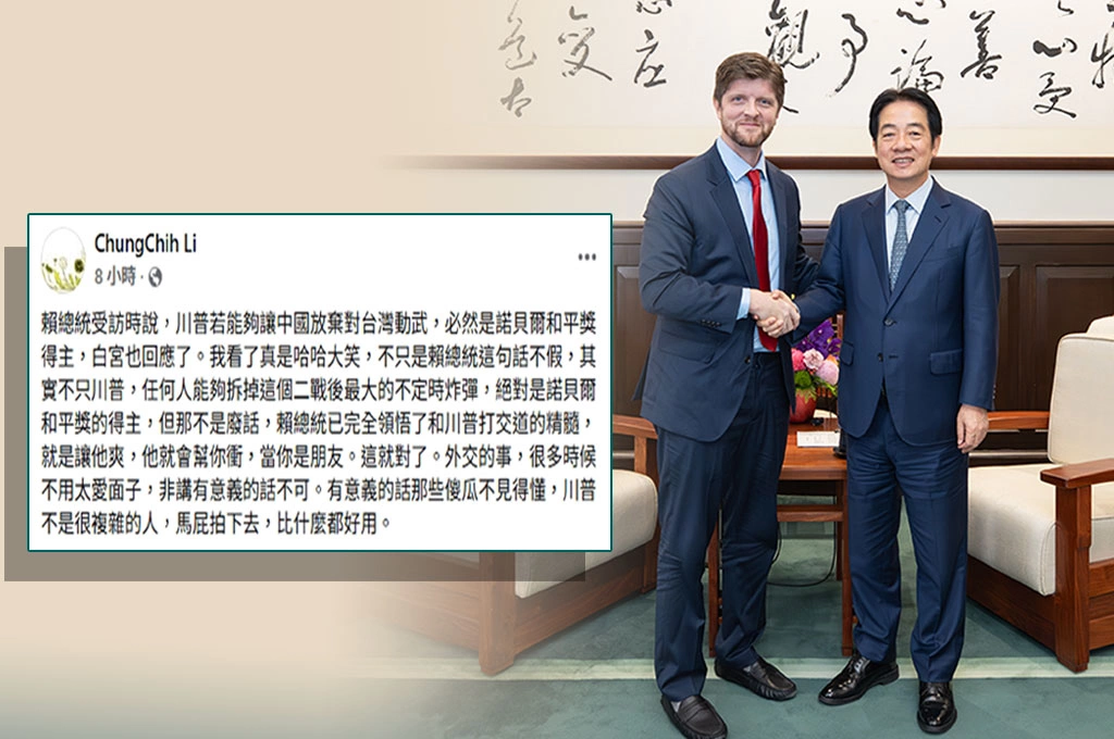 李中志表示,賴總統受訪時說,川普若能夠讓中國放棄對台灣動武,必然是諾貝爾和平獎得主,對此白宮也回應了。