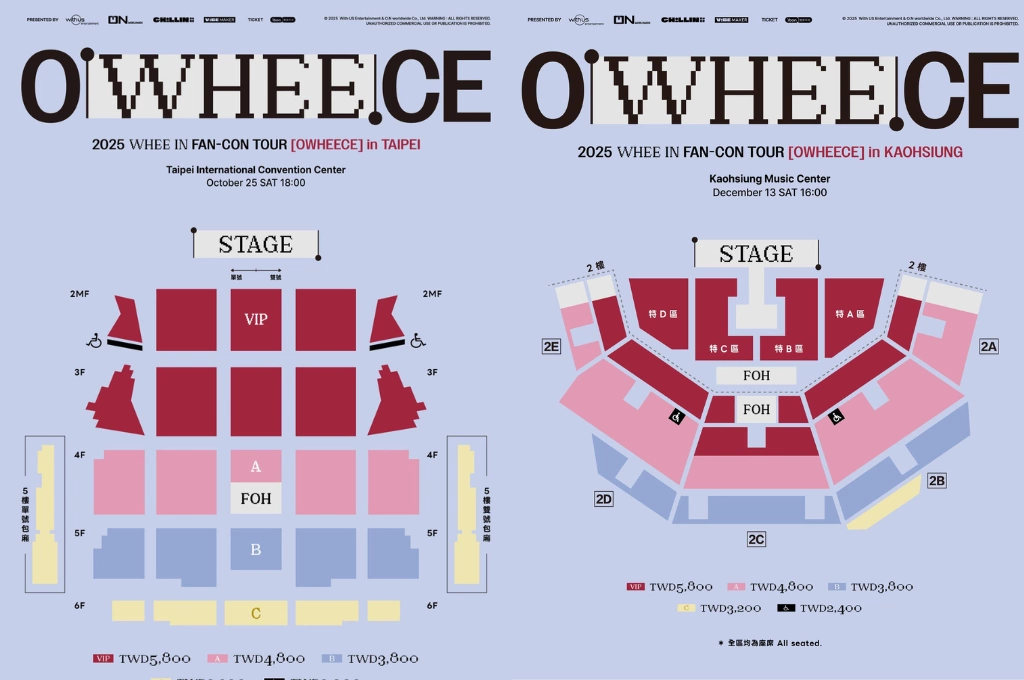 2025 Whee In FAN-CON TOUR [OWHEECE]臺北(左)、高雄場(右)票價座位圖