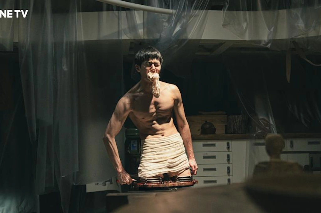 在《造物獄》中,張軒睿被囚禁於陰暗密室,裸上身被綑綁,雙腿遭斬斷後固定在人台上,血肉模糊的畫面令人怵目驚心。這場戲透過特效呈現,張軒睿必須長時間跪著演出,他坦言:「光是想像角色遭遇這樣的對待,就覺得很可怕,進入角色後恐懼感更真實。」