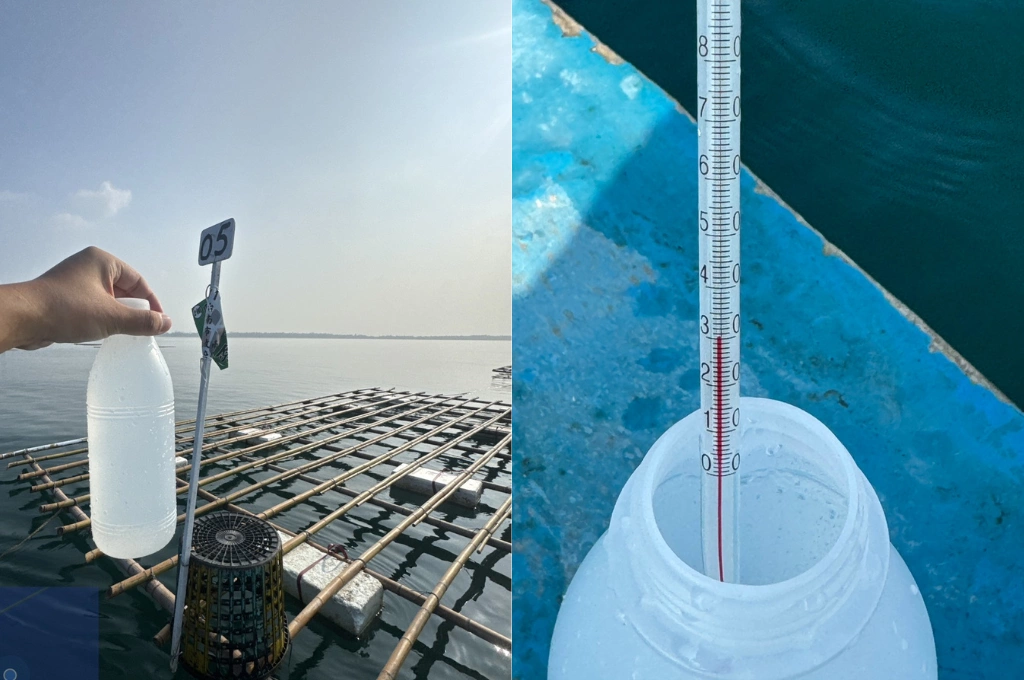 蚵農將蚵串綁在蚵棚下方,讓牡蠣利用「濾食」習性吸取水中的懸浮有機顆粒與浮游微細藻類。然而,隨著氣候變遷、颱風豪雨及海洋環境污染風險增加,牡蠣品質及產量受到直接影響,定期進行水質檢測因此成為守護產業的重要防線。