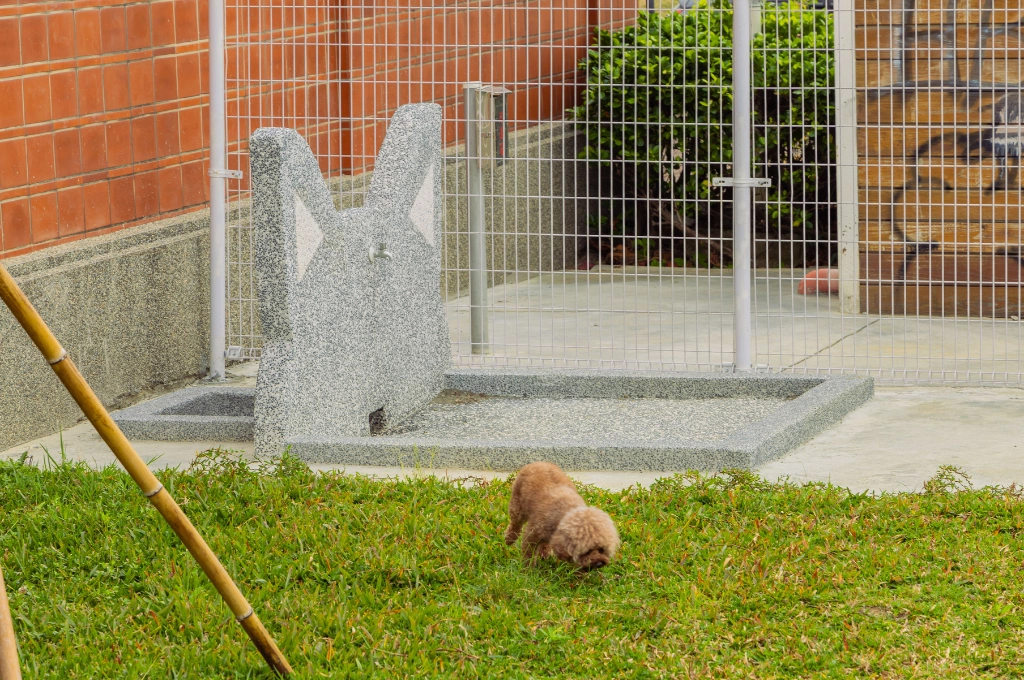 在設施規劃上,市府充分考量犬隻安全與飼主需求。出入口採雙層門單進單出設計,並設大小犬分區,避免犬隻衝突;活動空間保留大面積草坪,並增設涵洞、波浪板、獨木橋等設施,提供更多遊戲與奔跑樂趣。服務設施方面,設有休憩座椅、清洗飲水區、狗便袋箱與垃圾筒等配備,並設置教育告示牌,載明入園守則、動保宣導及代表犬介紹,兼具教育性與便利性。