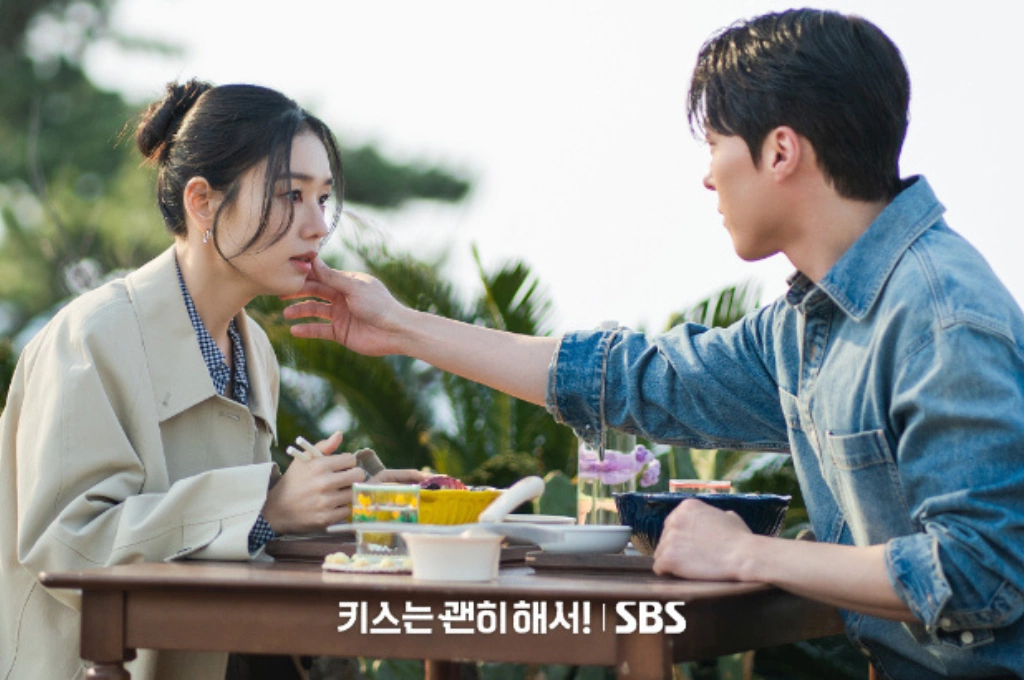 劇照延續浪漫氛圍。畫面中兩人背靠著背坐在庭院裡,陽光灑落臉龐,彷彿時間靜止;另一張則是孔志赫溫柔撫過高多琳的嘴角,曖昧張力十足。製作方透露:「在劇中,張基龍與安恩真將在一場天災級別的接吻中釋放強烈火花,他們的化學反應連觀眾的眼睛都會被甜到發燙。」