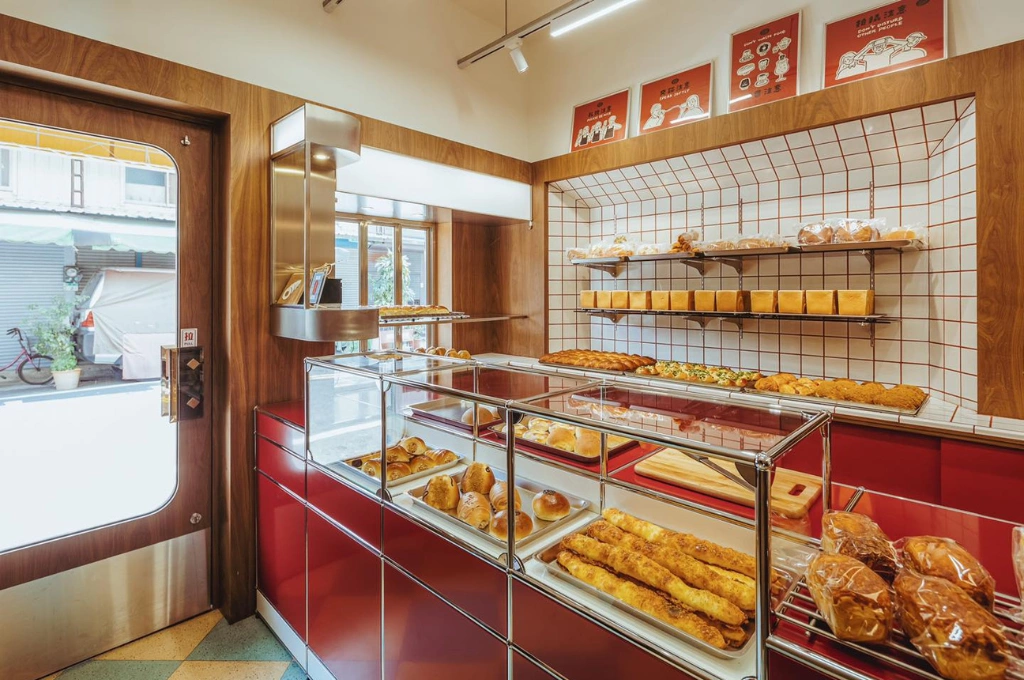 台南中西區的新美街上,有一間知名的排隊麵包店「蜷尾家パン」。外牆覆著湖水綠磁磚,門邊的復古玻璃櫃裡堆滿袋裝麵包,底層一整排招財貓朝街口招手,街角瀰漫著剛出爐的香氣。這裡是世界麵包冠軍武子靖主導的店之一,也是他推廣台灣烘焙文化的重要據點。