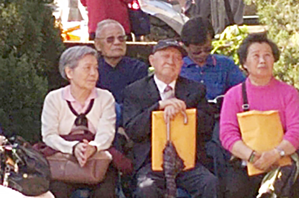 (圖片:民國104年11月22日上午,張盛華與蔡銀妹、陳桃敏(右)合影於新埔怒潮亭)