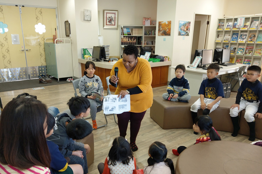 (南屯區春安國小外師利用每週三早自修晨光閱讀時間,帶領三年級的學生,進行英語繪本的導讀。)