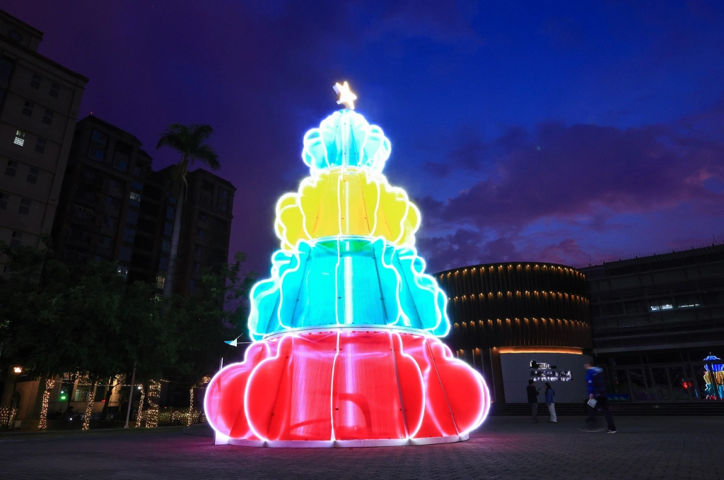 聖誕佳節將至,臺南市政府今年以「光」與「雲」為核心視覺,打造河樂燈區「光之旅程」與新營文化中心「雲之曙光」兩座風格各異的聖誕樹,為城市增添節慶暖意。新營文化中心廣場於12月6日完成首場聖誕點燈活動、河樂廣場也於14日舉辦「運河河樂燈區聖誕園遊市集暨點燈晚會」,兩座聖誕樹正式點亮臺南冬日風景。市府誠摯邀請市民朋友與外縣市親友前往參觀河樂燈區與新營文化中心聖誕樹,在璀璨燈光與溫暖氛圍中,共享幸福溫馨的聖誕時光。