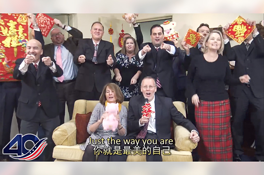 一年的故事畫下句點,新的開始又在紅通通的喜氣氛圍中即將啟程,為迎接農曆豬年的到來,美國在臺協會(AIT)繼去年狗年創意短片,今年再創驚奇賀歲影片來祝福台灣民眾。由AIT處長酈英傑化身火星人布魯諾,率領AIT人員齊歡唱,祝福台灣新年快樂;影片後段也用台、中、英三種語言,改編最近火紅的「愛江山更愛美人」來祝福台灣關係法及AIT成立40周年。