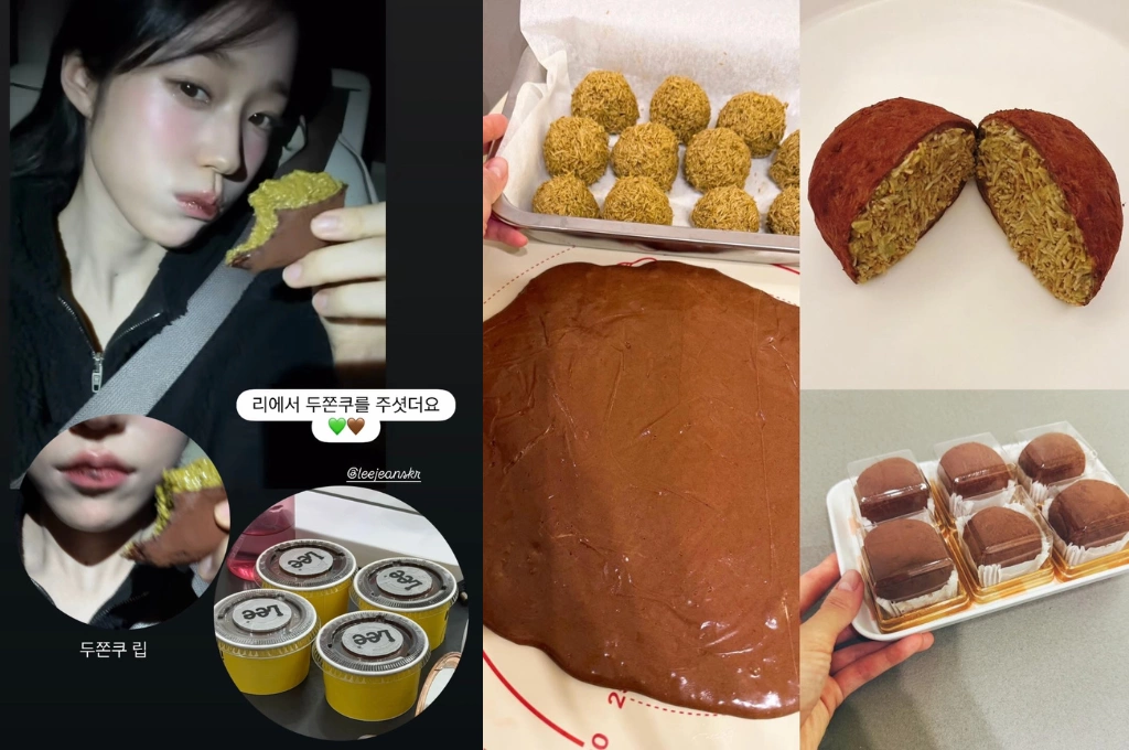 IVE忙內(老么)李瑞近期也在官方YouTube頻道釋出《為了姐姐們的驚喜企劃!李瑞的杜拜巧克力Q餅製作記》影片,完整展示製作流程。從混合卡達伊夫和開心果醬並搓揉成圓形開始,接著將棉花糖融化後加入可可粉攪拌均勻做成外皮,包起卡達伊夫球,最後沾上可可粉後就完成了。雖然「驚喜」被提前暴雷,IVE成員們在收到李瑞親手製作的「杜拜巧克力Q餅」後仍讚不絕口,她們也分享,自己一天最多可以吃三顆,可見女孩們對「國民甜點」的喜愛。