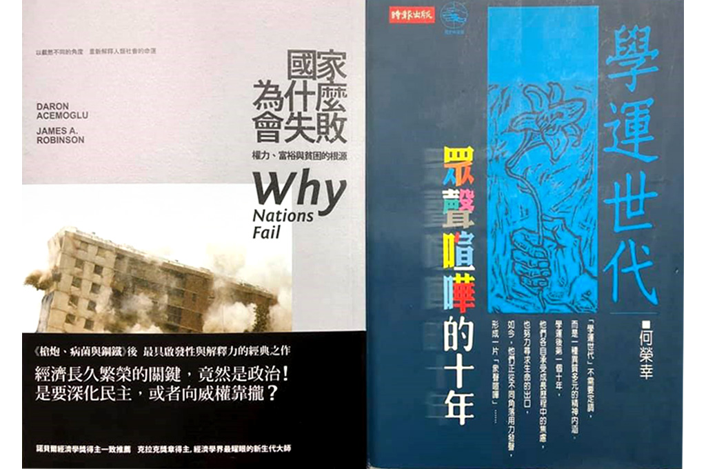 (示意圖製作-放言視覺設計部 鄭羽彤、內文照片翻攝自《國家為什麼失敗》及《學運世代:眾聲喧嘩的十年》書籍)