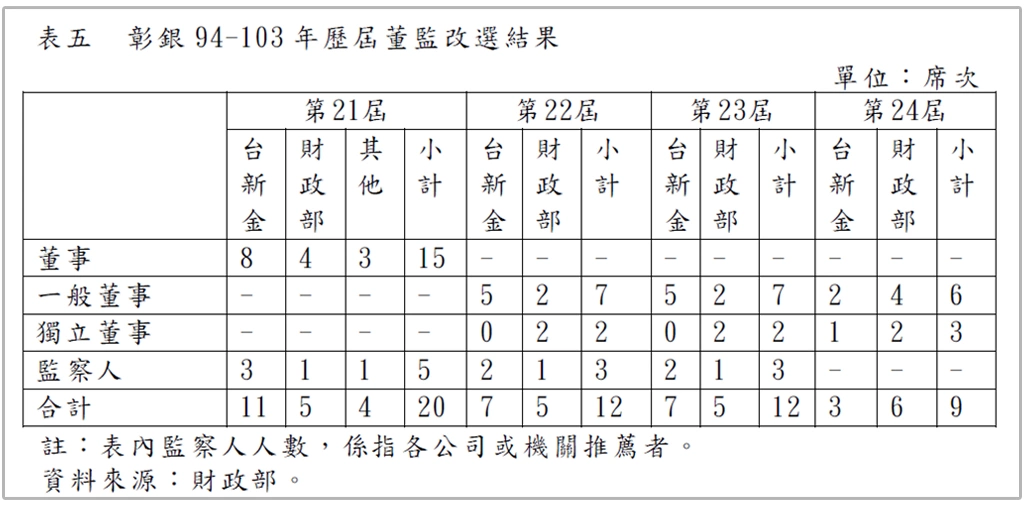 2014年的彰銀董事改選,也引發外界對制度角色的質疑,財政部整合公股行庫與公營機構,並委由多家券商協助徵求委託書,最終在董事席次上取得優勢。《經濟日報》2014年12月11日的報導評論,公股在控制權爭奪上的動員力道,「比市場派還市場派」,也因此出現「裁判兼球員」的負面觀感。