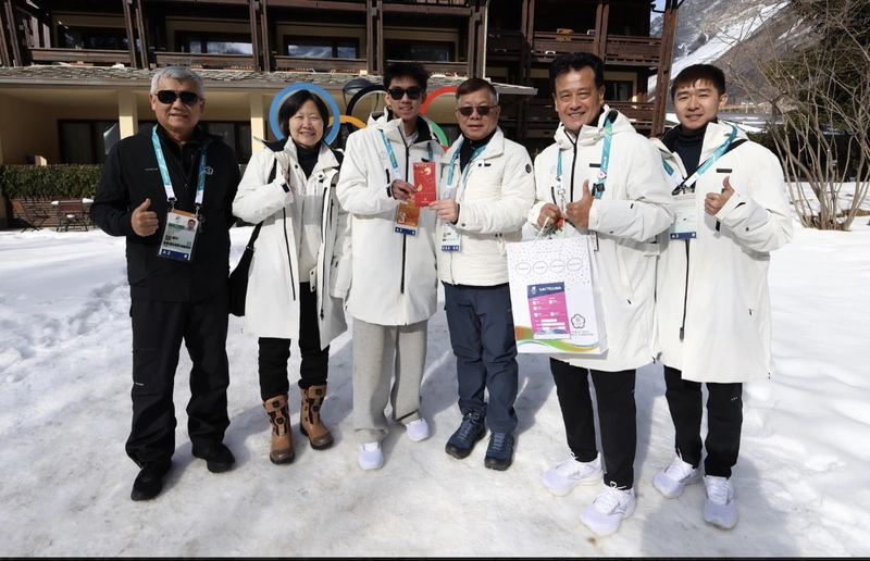 (中央社記者黎建忠台北9日電)2026年米蘭冬季奧運正如火如荼進行,中華奧會主席蔡家福前往博爾米奧(Bormio)賽區,訪視男子阿爾卑斯式滑雪選手張天將、教練古國華及物治師吳家羽,並頒發1000歐元激勵金。