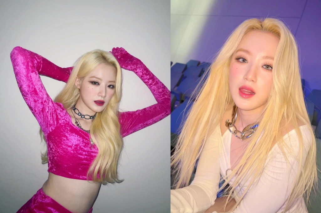白皙的皮膚是舒華的特色,金髮紅唇造型也讓她打造全新形象