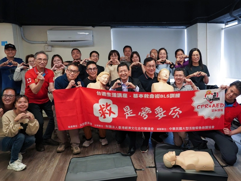 台港經濟文化合作策進會(策進會)今日發布新聞稿表示,策進會與大陸委員會(陸委會)今年規劃10場「2026港澳人士台適生活講座」,在全台巡迴舉辦「救是需要你」心肺復甦術教學系列活動。