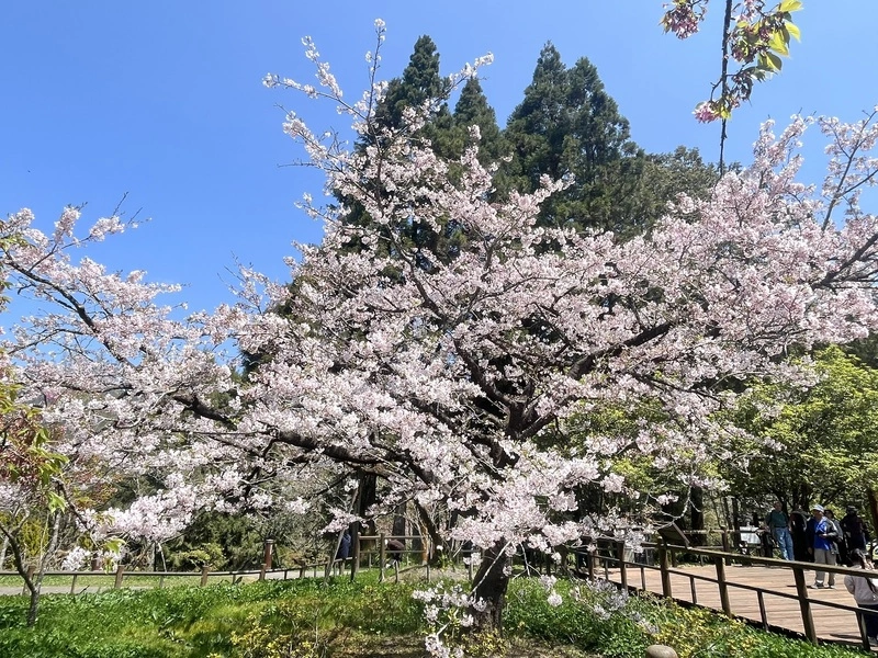 嘉義分署表示,櫻王樹齡約100年、高6公尺,它是每年花況指標,一旦開花,其他吉野櫻便會在一週內陸續綻放;目前園區內有上千株與櫻王同品種的染井吉野櫻,它們是每年阿里山花季主角。