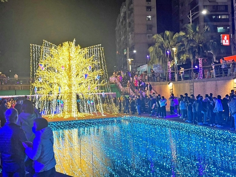 水利局發布新聞稿表示,2026中港大排光雕展一年比一年炫麗,今年規劃「星耀中港夢幻星河」光雕秀,規劃4大主題展區,最受矚目的必拍打卡亮點為自信橋下、高達7公尺的立體發光裝置「星耀之樹」,廣受民眾好評。