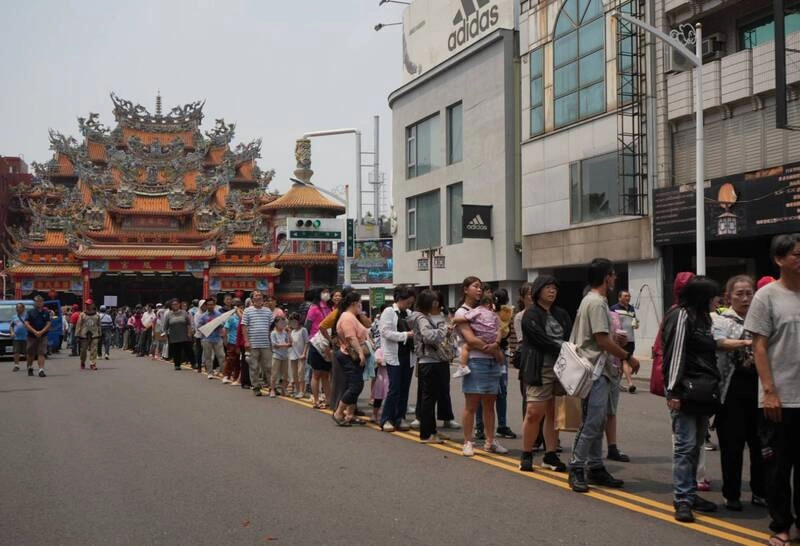 屏東市天聖宮今年開基160週年舉辦「雙媽會」遶境盛典,今天一早即在天聖宮迎來大甲媽,隨後展開市區遶境,11時許行至屏東聖帝廟拜禮,中午在慈鳳宮停駕2小時拜會阿猴媽,沿途大批民眾參拜、鑽轎腳,有民眾直呼,一次可以鑽到雙媽轎腳「很超值」。
