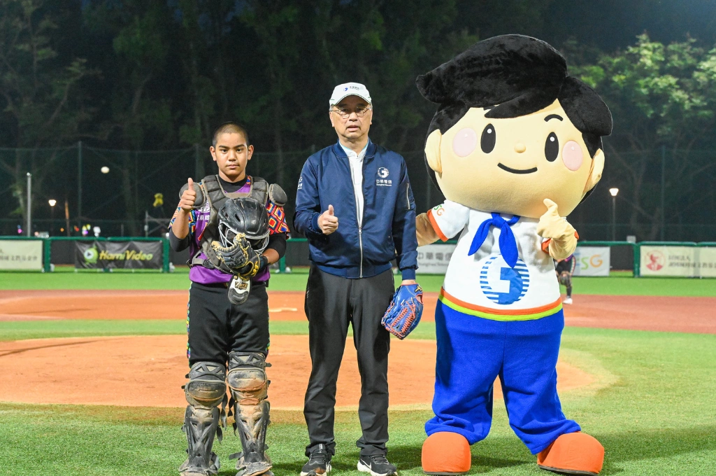 中華電信謝國城盃全國少棒錦標賽圓滿落幕,中華電信台北營運處蘇振乾總經理(中)參與開球儀式
