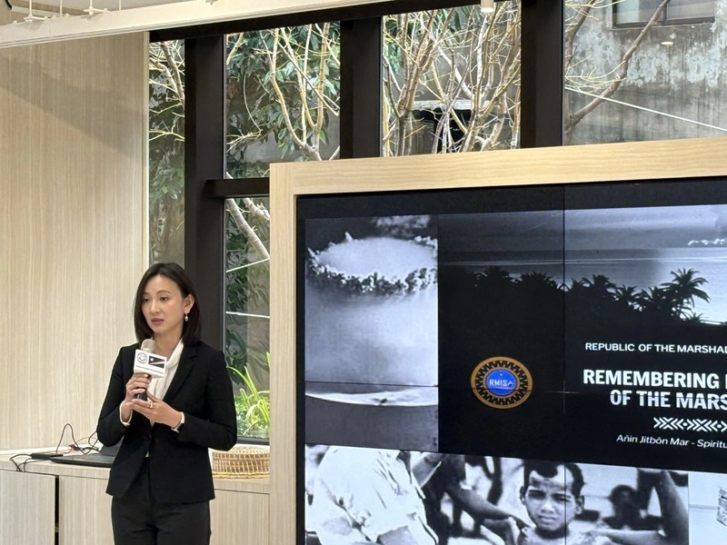 新北市青年局今天協助友邦馬紹爾群島共和國大使館,在新北市青職基地舉辦「核試受難紀念日」活動。馬紹爾駐台大使卡蒂爾(Anjanette Kattil)與留台學生透過演唱傳統歌謠、播放紀錄片、展覽手工藝及攝影作品追思,傳達和平與環境永續的重要性。