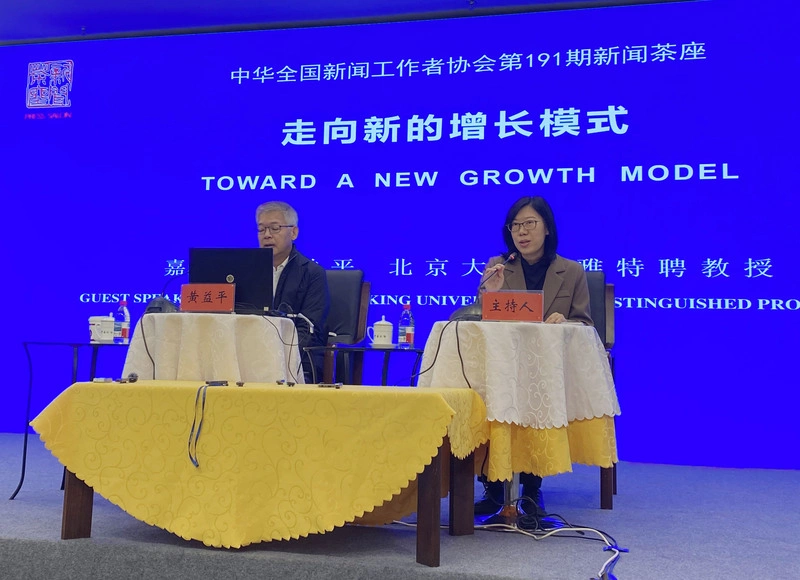 中國記協今天舉行新聞茶座,由北京大學博雅特聘教授、國家發展研究院院長、中國人民銀行貨幣政策委員會委員黃益平主講「走向新的增長模式」。
