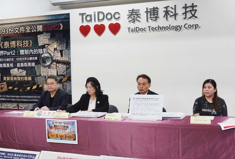 生醫公司泰博科技上午舉行記者會,公布相關公文和相關資料,稱特定勞團利用制度漏洞自編、自導、自演,指控工會透過編造虛假劇本,對台灣企業進行惡意迫害。