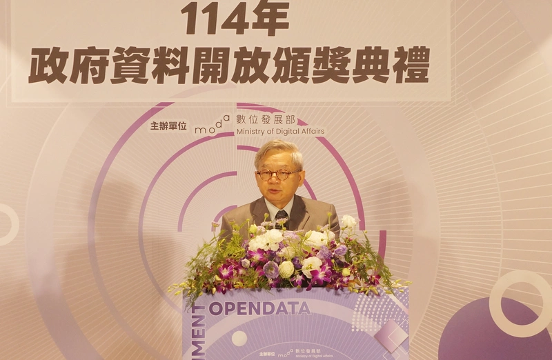數發部今天舉辦「114年政府資料開放頒獎典禮」,由行政院政委兼國科會主委吳誠文、數發部長林宜敬頒發資料開放金質獎、品質進步獎、資料開放人氣獎、開放文本語料績優獎等獎項。