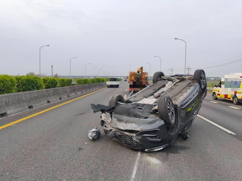 國道警察局第四公路警察大隊指出,27歲呂姓男子於今天上午6時許,駕駛自小客車行經國1台南市下營路段南向298.8公里處時,疑未注意車前狀況,撞擊61歲黃姓男子駕駛的休旅車,造成休旅車撞擊內側護欄後,再遭44歲蘇姓男子駕駛的自小客車撞擊而翻覆。