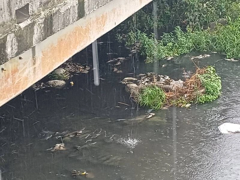 環保局告訴中央社記者,環保局人員巡查蜈蜞潭中排上游,未見死魚及工廠異常排放情形,但在下游中正北路竹子橋下發現死魚。