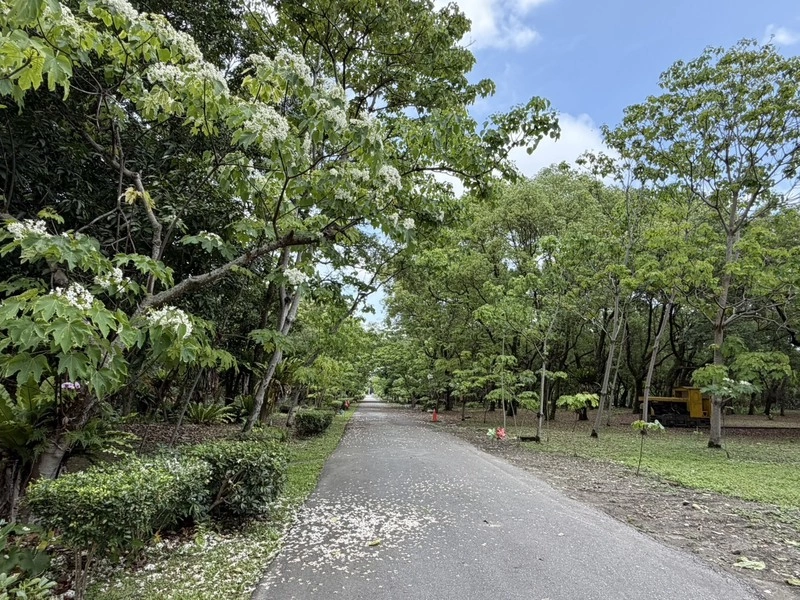 (中央社記者張祈花蓮縣5日電)位在花蓮縣吉安鄉的南華林業文化園區種植約300棵油桐樹,每年4月間花期盛開,隨風飄落有著「春天雪」美稱,受年初低溫影響,今年較晚開花,預估9日起進入盛開期。