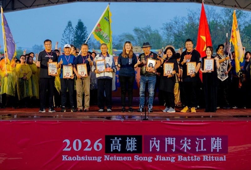 (中央社記者蔡孟妤高雄5日電)高雄市觀光局舉辦2026高雄內門宋江陣系列活動,其中「全國創意宋江陣頭大賽」決賽昨天登場,由「鳳武薪傳-西螺鳳山館」奪得冠軍;今天則將舉辦「羅漢門迎佛祖」遶境及內門紫竹寺煙火秀。