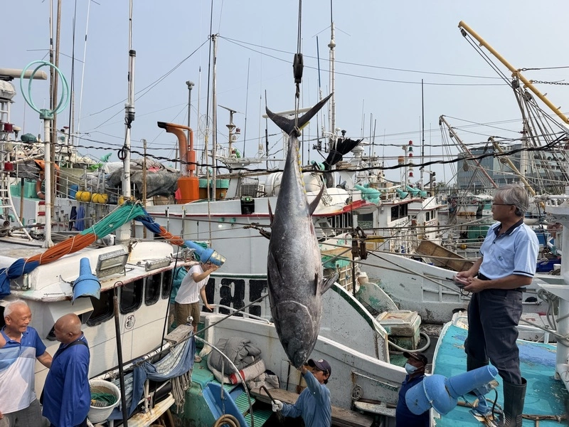 (中央社記者李卉婷屏東縣6日電)黑鮪魚汛期到來,今年屏東「第一鮪」由琉球籍漁船富漁慶2號捕獲,重量超過175公斤,符合第一鮪資格,船長洪福家開心說,出港5天驚喜捕獲,起鉤過程緊張又刺激。
