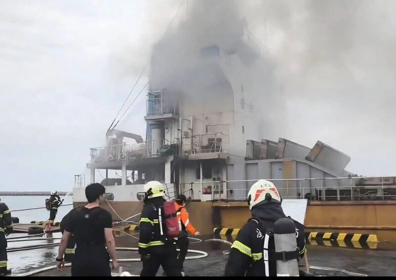 消防局是在今天上午近7時許受理警察局轉報指稱,湖西鄉龍門港貨運碼頭,有一艘貨船正在起火燃燒,請求派遣人車前往搶救。