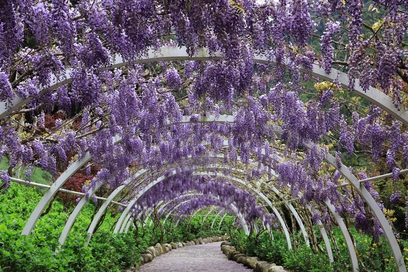 另外,特別改造種植的紫藤也盛開中,全長約200公尺的紫色花廊隧道,打造深邃視覺效果,極具觀賞性,花期估持續至25日。(編輯:吳素柔)1150407