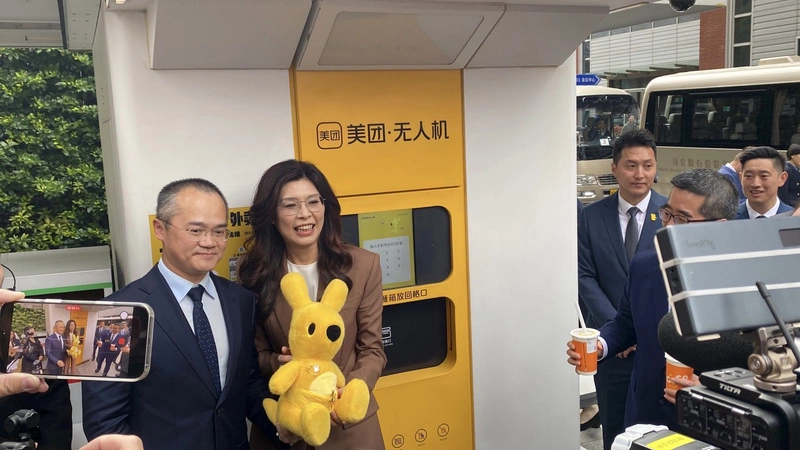 參訪美團時,鄭麗文體驗了無人機外送叫奶茶。她隨後上海濱江工業區時,參加了一場台灣與上海青年文化交流活動。她今晚與陳吉寧會面後,一行人將乘船夜遊黃浦江。