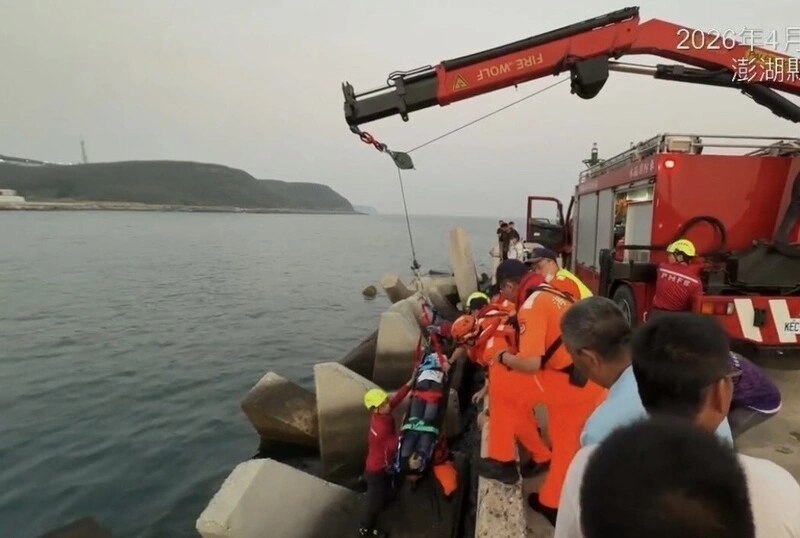 (中央社澎湖縣12日電)澎湖徐姓釣客11日在外垵漁港防波堤釣魚時,失足落海卡在消波塊縫隙,第七岸巡與警消聯合救援吊掛上岸,護送至三總澎湖醫院治療。
