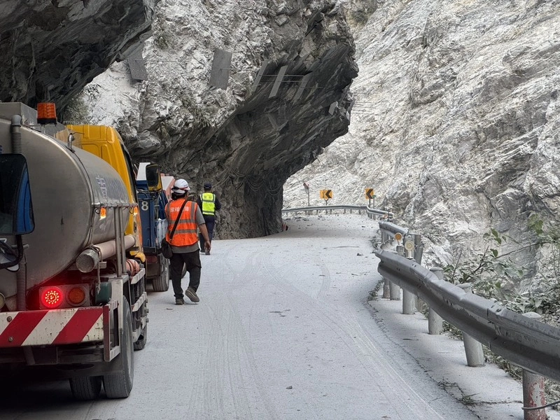 花蓮縣警察局新城分局表示,今天下午5時許,獲報在中橫公路流芳橋路段有落石自上邊坡滾落於道路上,員警會同交通部公路局東區養護工程分局太魯閣工務段人員、機具趕往現場處理,因落石持續掉落,警方在事發道路前後實施交通管制,以維護行車安全。