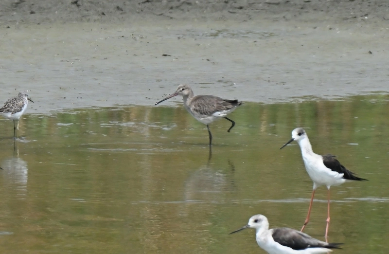 春季過境水鳥包括赤足鷸與青足鷸等鳥種,常可見其於水邊覓食、活動頻繁;此外,正值繁殖羽轉換期的鶴鷸,羽色由冬季灰白轉為深色,對比鮮明。另有少見的長嘴半蹼鷸過境停留,為濕地增添觀察亮點。