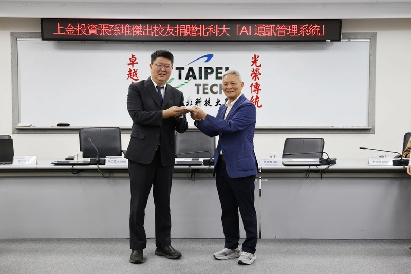 台北科技大學發布新聞稿指出,今天舉行「AI通訊管理系統暨AI算力中心籌辦準備金捐贈儀式」,由上金投資股份有限公司董事長張孫堆捐贈市值新台幣1200萬元的AI通訊管理系統,並提供50萬元作為AI算力中心籌設準備金。