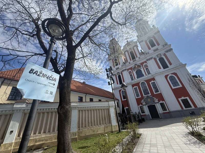 作為維爾紐斯(Vilnius)市政府推動外籍居民語言融入政策的一環,這些巨型「便利貼」分布在市區多處地點,上面以英語、俄語及印地語對照標示立陶宛語詞彙,例如教堂、博物館、垃圾桶和車站等日常單字,將語言學習方法延伸至整座城市,讓行人在生活中自然接觸並記憶語言。