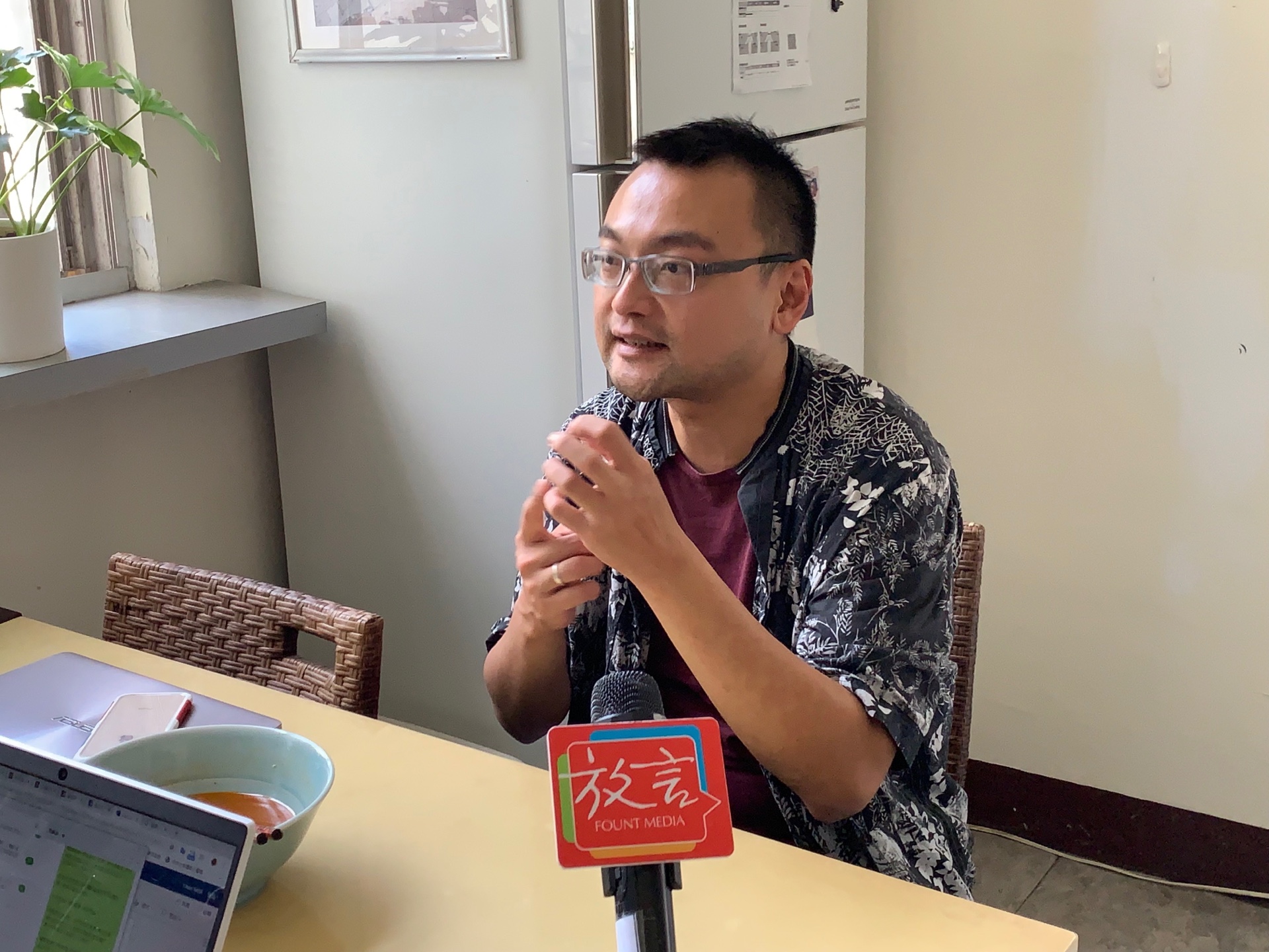 走進簡士耕家中,他打聲招呼便搭配著泡麵,邊接受《放言》的專訪,就像朋友般樸實聊天。