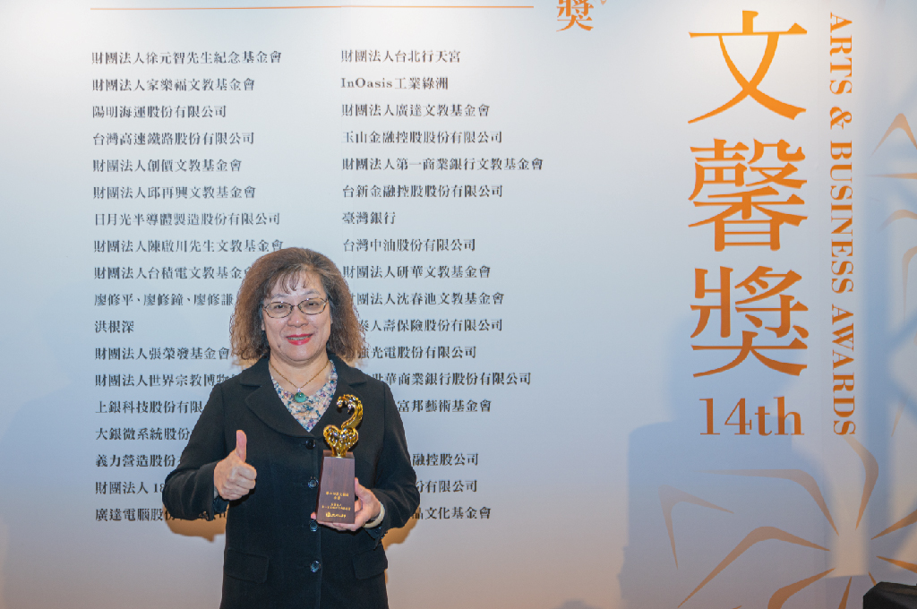 第一銀行文教基金會長期扶植多元藝文活動,11月19日榮獲文化部頒發第14屆文馨獎「常設獎-金獎」殊榮,肯定在本土藝文推展、關懷弱勢團體圓夢、贊助各式藝文展演活動等面向皆有傑出表現,默默耕耘傳達正向能量之用心,並由第一銀行文教基金會鄭美玲副董事長代表出席領獎。