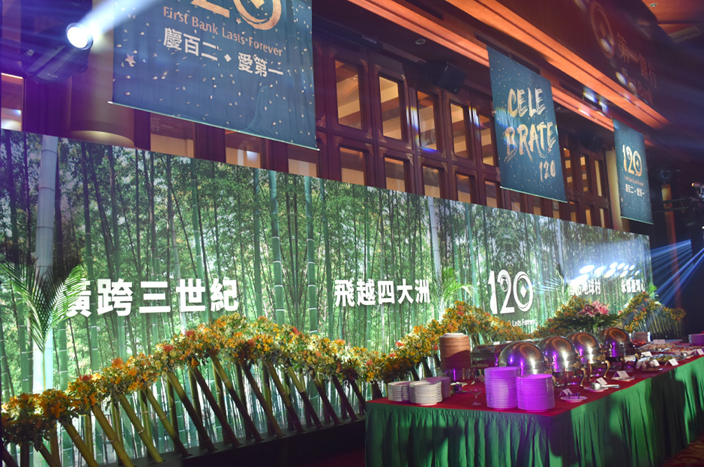 從本土到國際,百年的淬鍊,橫跨三世紀的經驗與服務,第一銀行在成立120周年的當日,於台北圓山大飯店舉辦「第一銀行120周年慶祝酒會」,特別以遍布全台的「竹子」為主題,取其生命力、謙遜及品格為意象,呼應第一銀行「綠色金融,第一品牌」的理念,秉持「顧客至上,服務第一」的初衷,希望能善盡社會責任,陪伴台灣社會、攜手國內外客戶,繼續一同創造更加亮眼的經濟奇蹟。