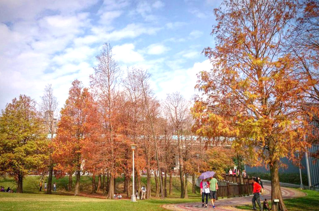台北大湖公園內種植了許多落羽松,數量也不輸其他地方。這裡更有別個景點沒有的大湖,當一整片落羽松林倒映在湖上,那樣的美景真是用文字形容不出來的!在周末好天氣與家人來公園散散步、野餐,邊曬太陽也邊欣賞落羽松,好不愜意阿!在冬天追尋落羽松腳步的你絕對不能錯過台北大湖公園!!